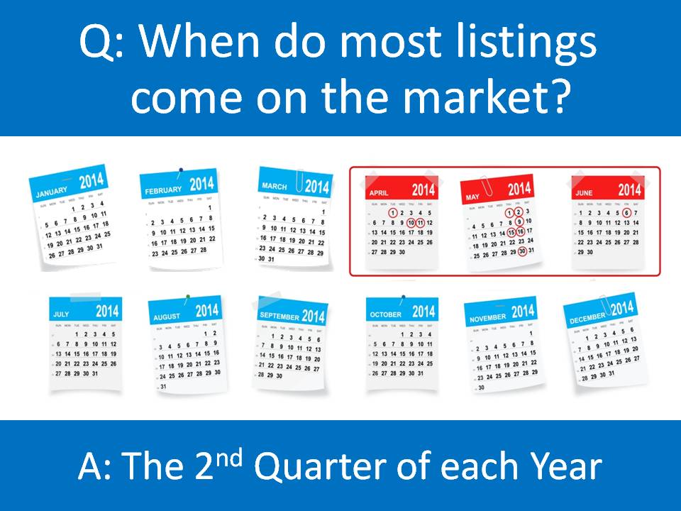- The National Association of REALTORS (NAR) recently reported that the top 10 dates sellers listed their homes in 2014 all fell in April, May or June. (See chart)