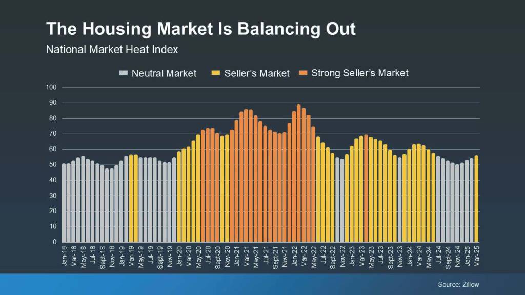 The orange bars in the middle of the graph show the years when sellers had their strongest advantage, from 2020 to early 2022. But, as time has gone on, the market has become more balanced. It shifted from a strong seller’s market to a less intense one. And lately, it’s been neutral more than anything else (that’s the gray bars on the right side of the graph). That means buyers are gaining some negotiating power again.